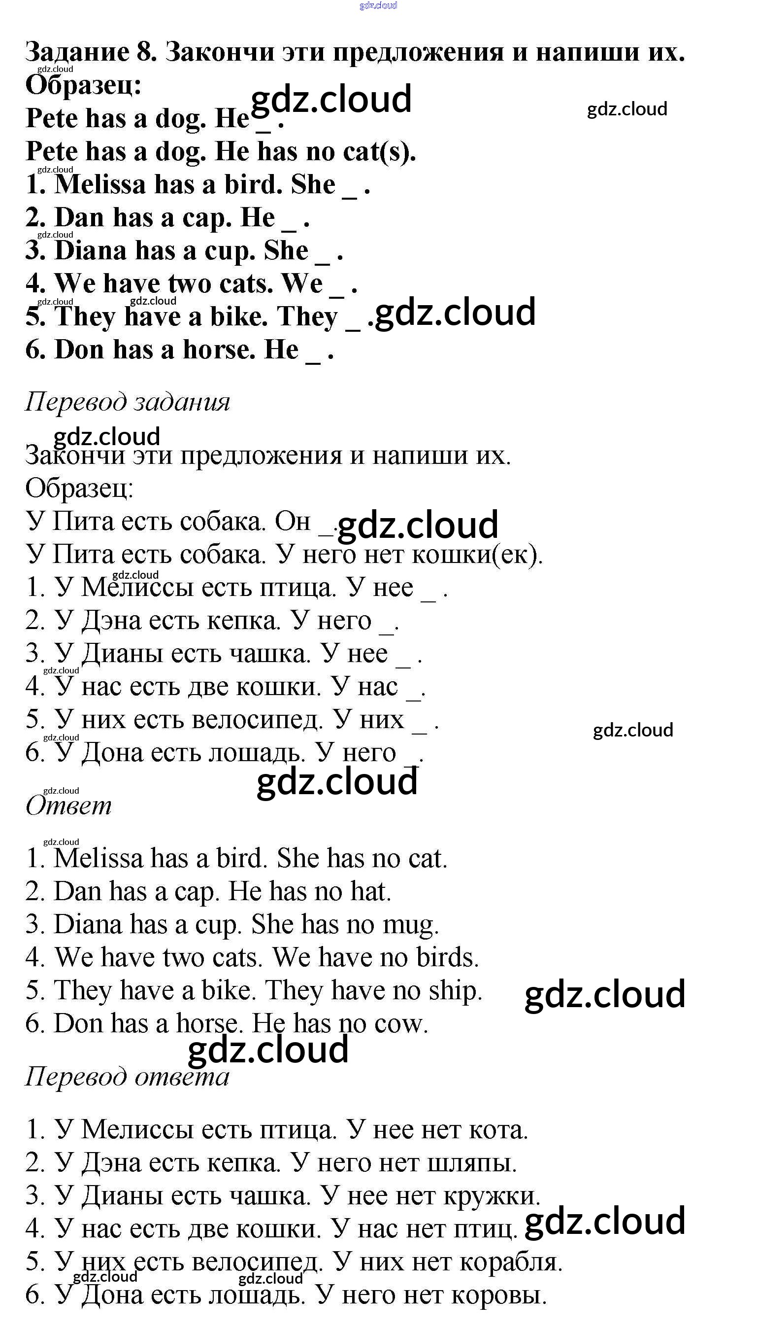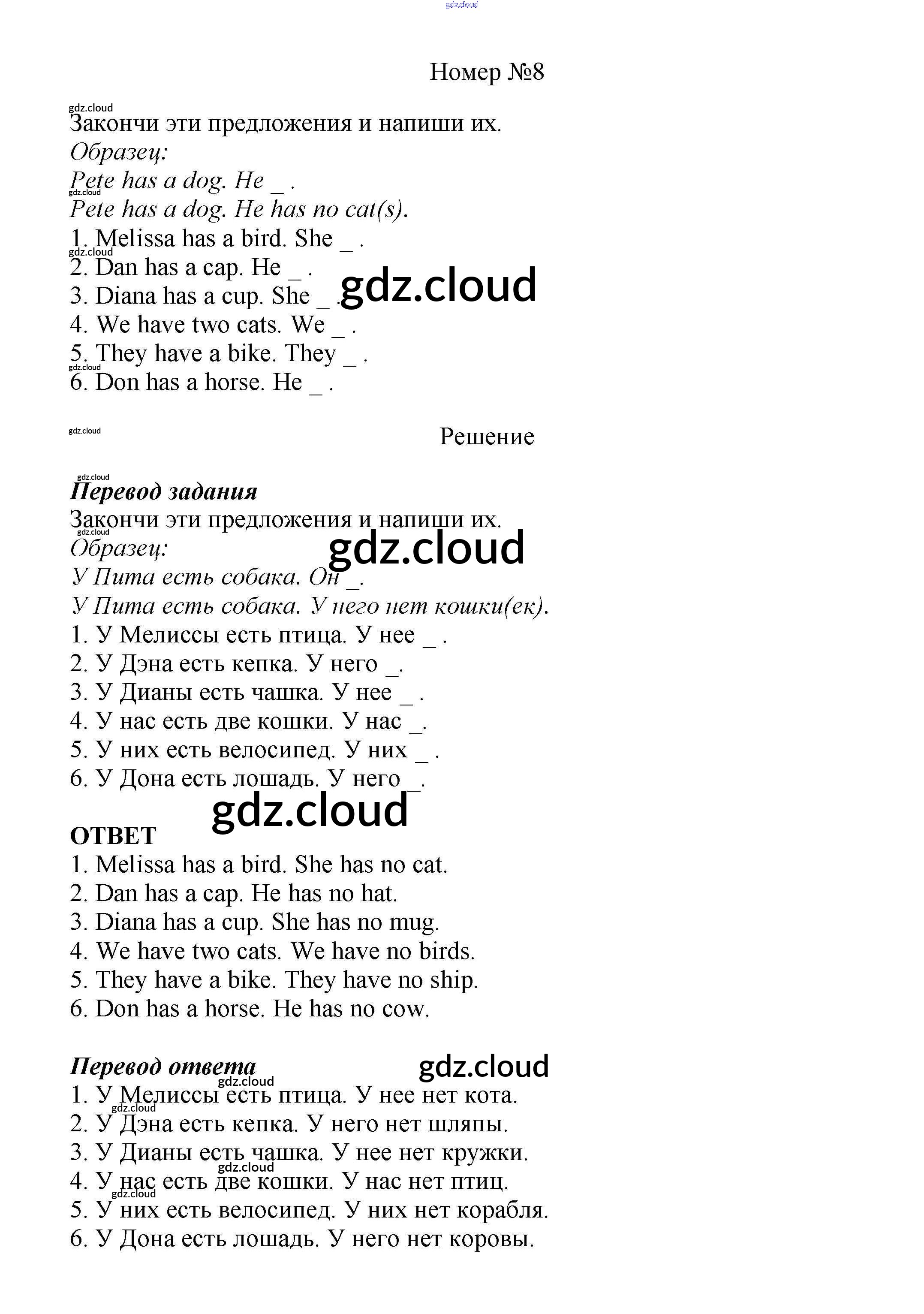 Ответ на задание 8 Учебник Английский язык за 5 (пятый) класс Афанасьева, Михеева Новый курс 2017