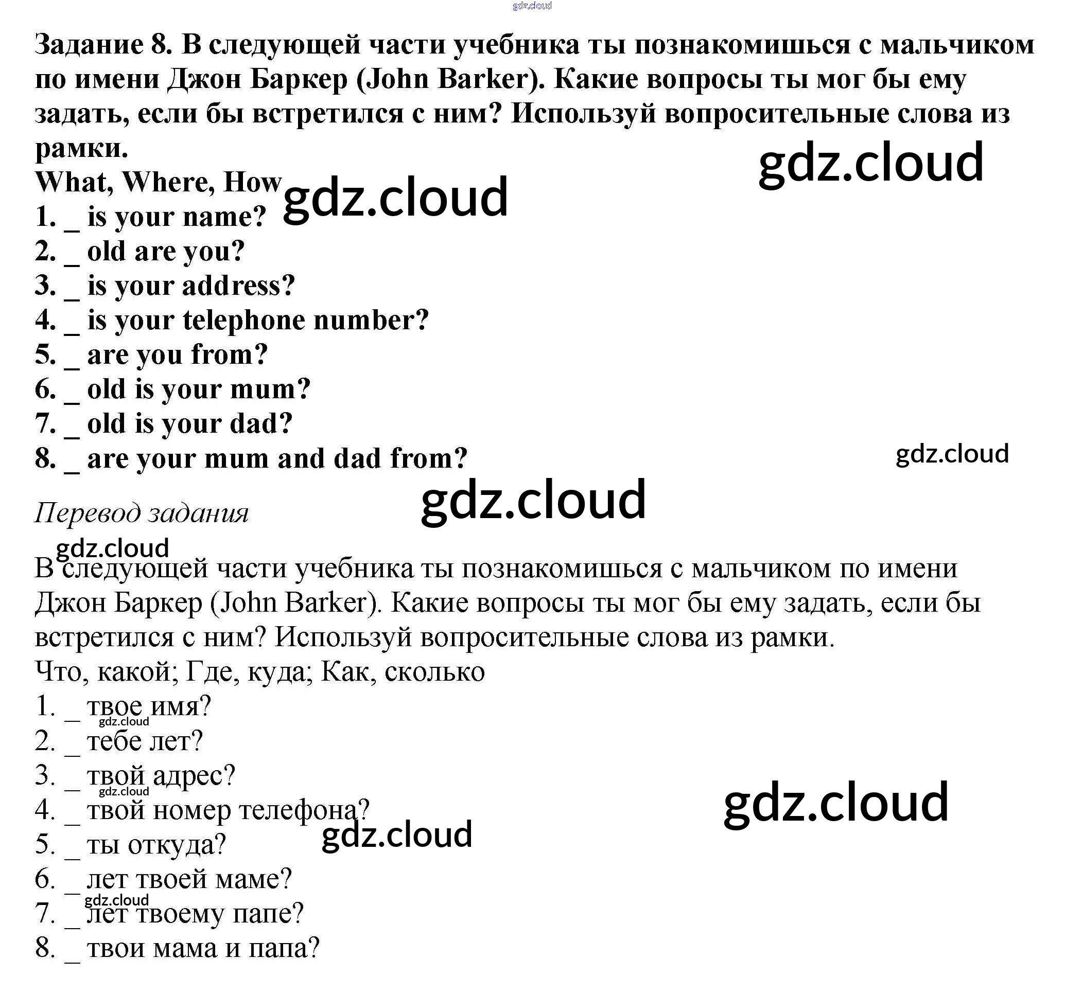 Ответ на задание 8 Учебник Английский язык за 5 (пятый) класс Афанасьева, Михеева Новый курс 2017