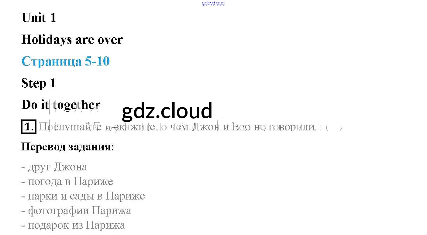 Step 1 Ответы к Unit 1. Holidays Are Over по Английскому языку 5 класс Учебник Афанасьева Rainbow Часть 1, 2 Дрофа