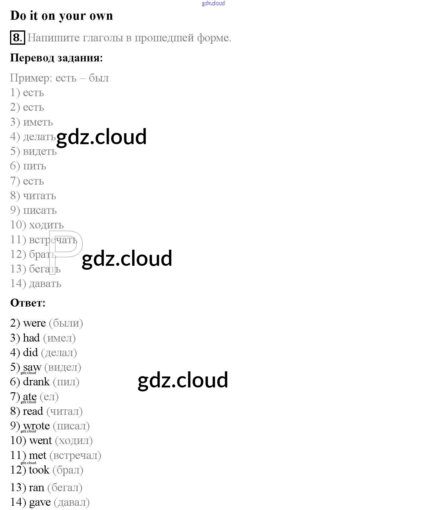 Ответ на задание 8 Учебник Английский язык за 5 (пятый) класс Афанасьева, Михеева, Баранова Rainbow 2017 Часть 1, 2