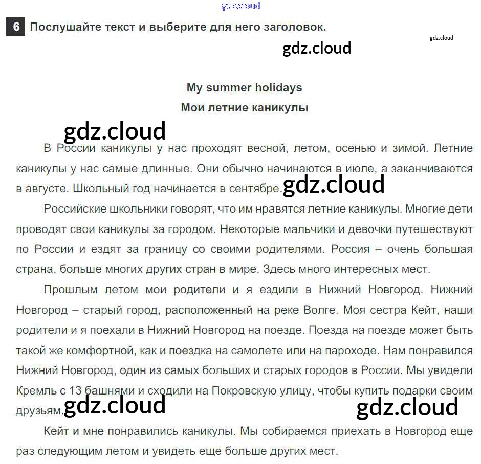 Ответ на задание 6 Учебник Английский язык за 5 (пятый) класс Афанасьева, Михеева, Баранова Rainbow 2017 Часть 1, 2