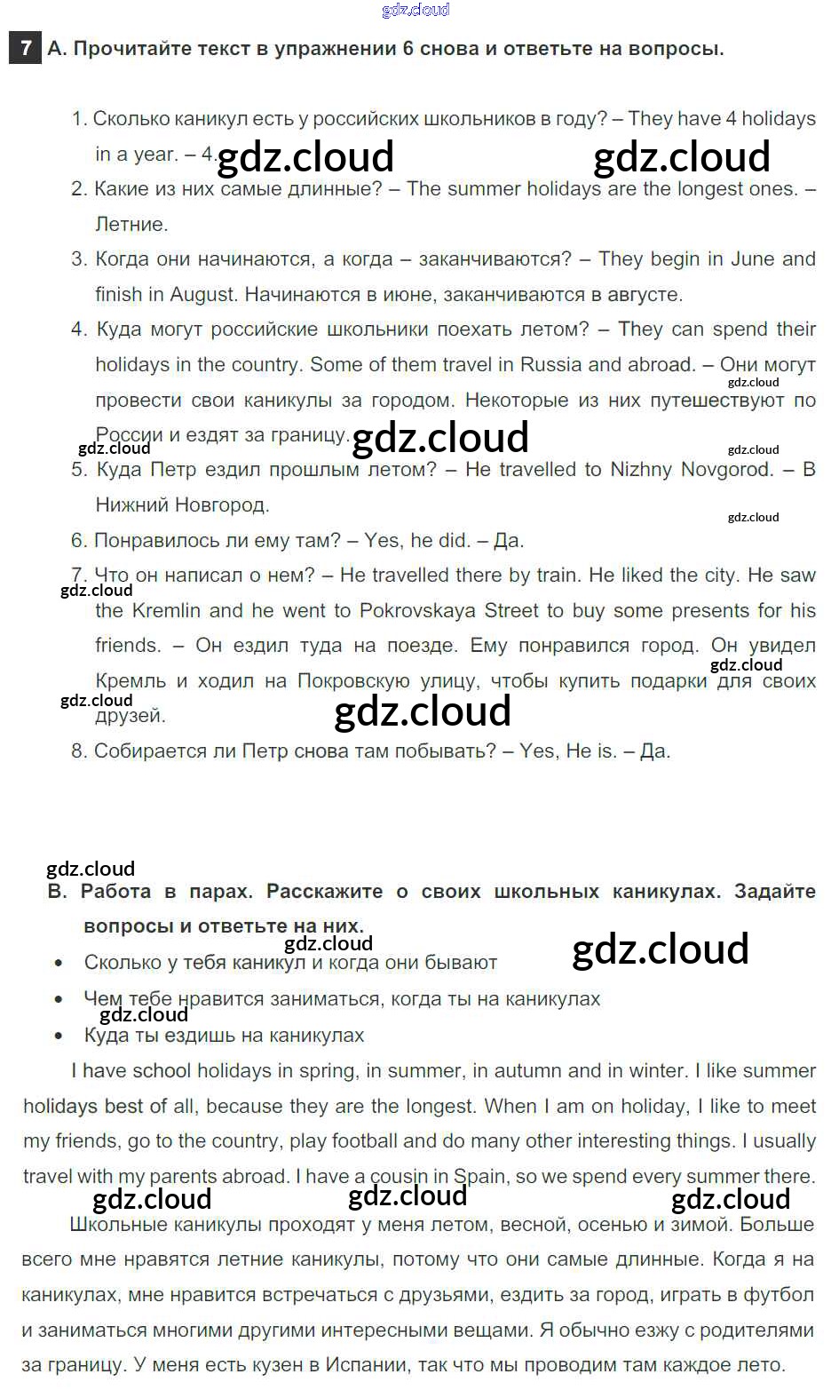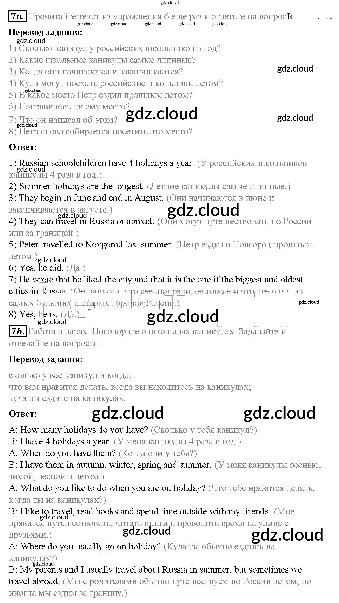 Step 7 Ответы к Unit 1. Holidays Are Over по Английскому языку 5 класс Учебник Афанасьева Rainbow Часть 1, 2 Дрофа