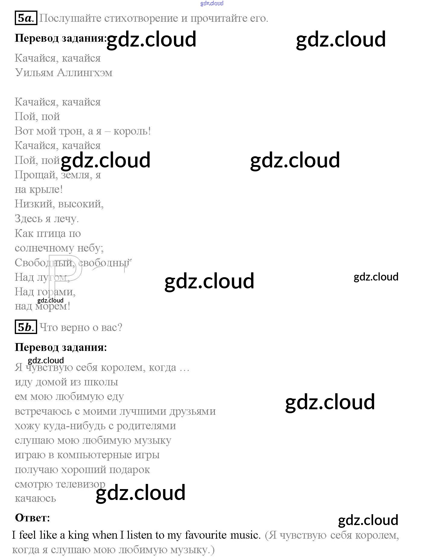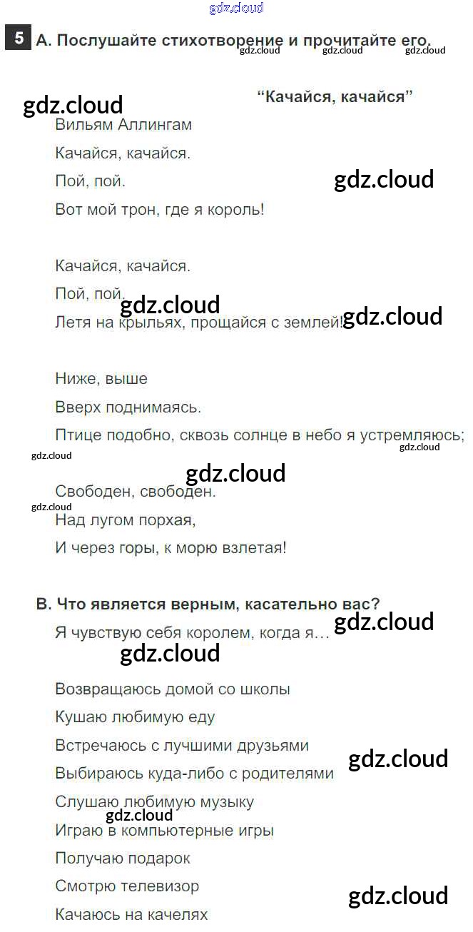 Ответ на задание 5 Учебник Английский язык за 5 (пятый) класс Афанасьева, Михеева, Баранова Rainbow 2017 Часть 1, 2