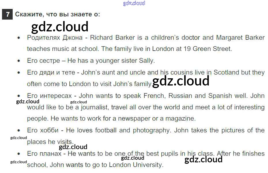 Ответ на задание 7 Учебник Английский язык за 5 (пятый) класс Афанасьева, Михеева, Баранова Rainbow 2017 Часть 1, 2