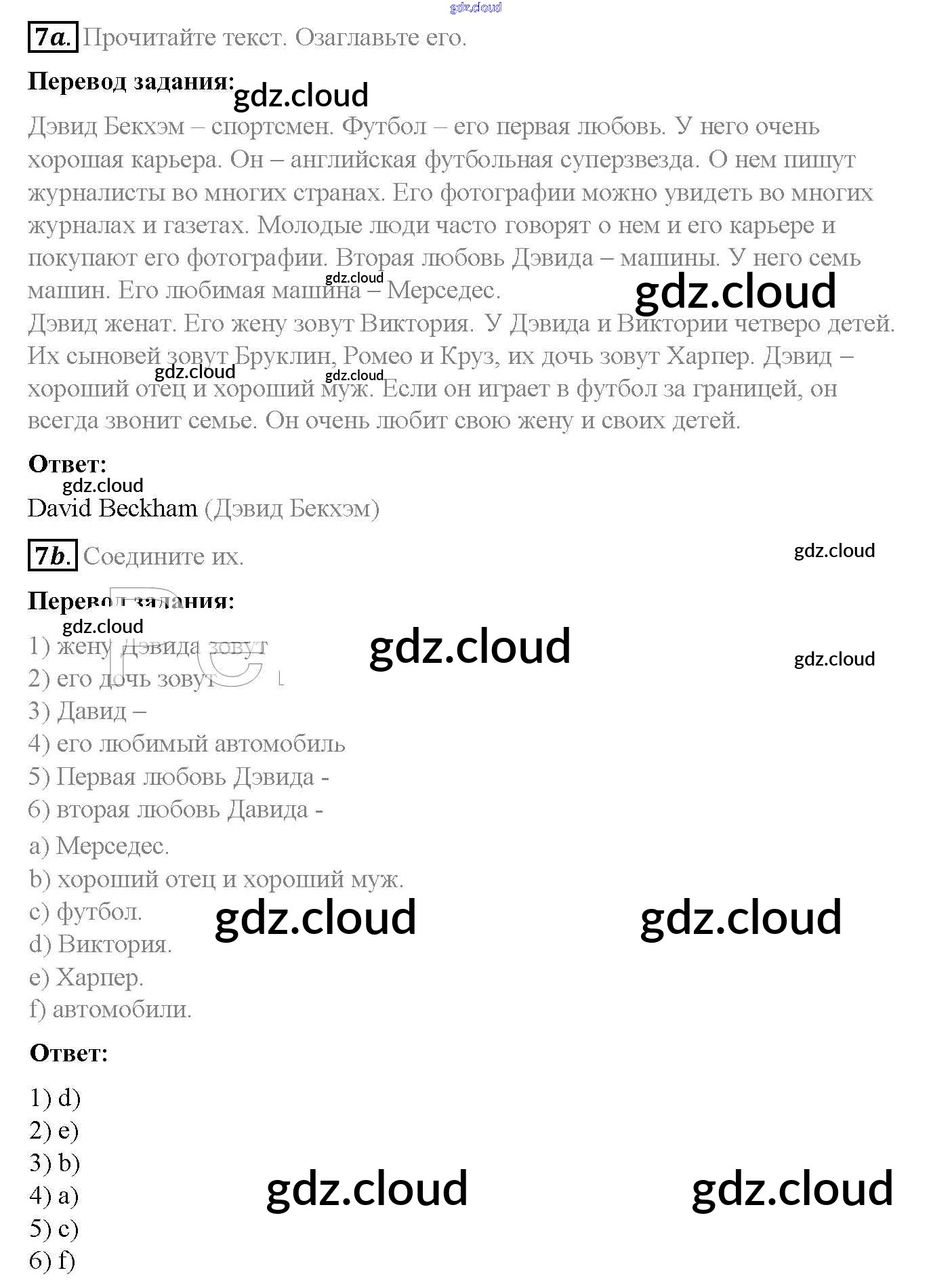 Step 7 Ответы к Unit 2. Family History по Английскому языку 5 класс Учебник Афанасьева Rainbow Часть 1, 2 Дрофа