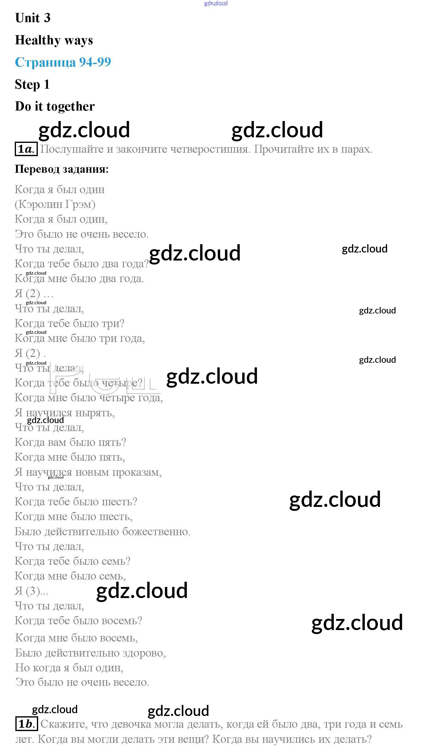 Step 1 Ответы к Unit 3. Healthy Ways по Английскому языку 5 класс Учебник Афанасьева Rainbow Часть 1, 2 Дрофа