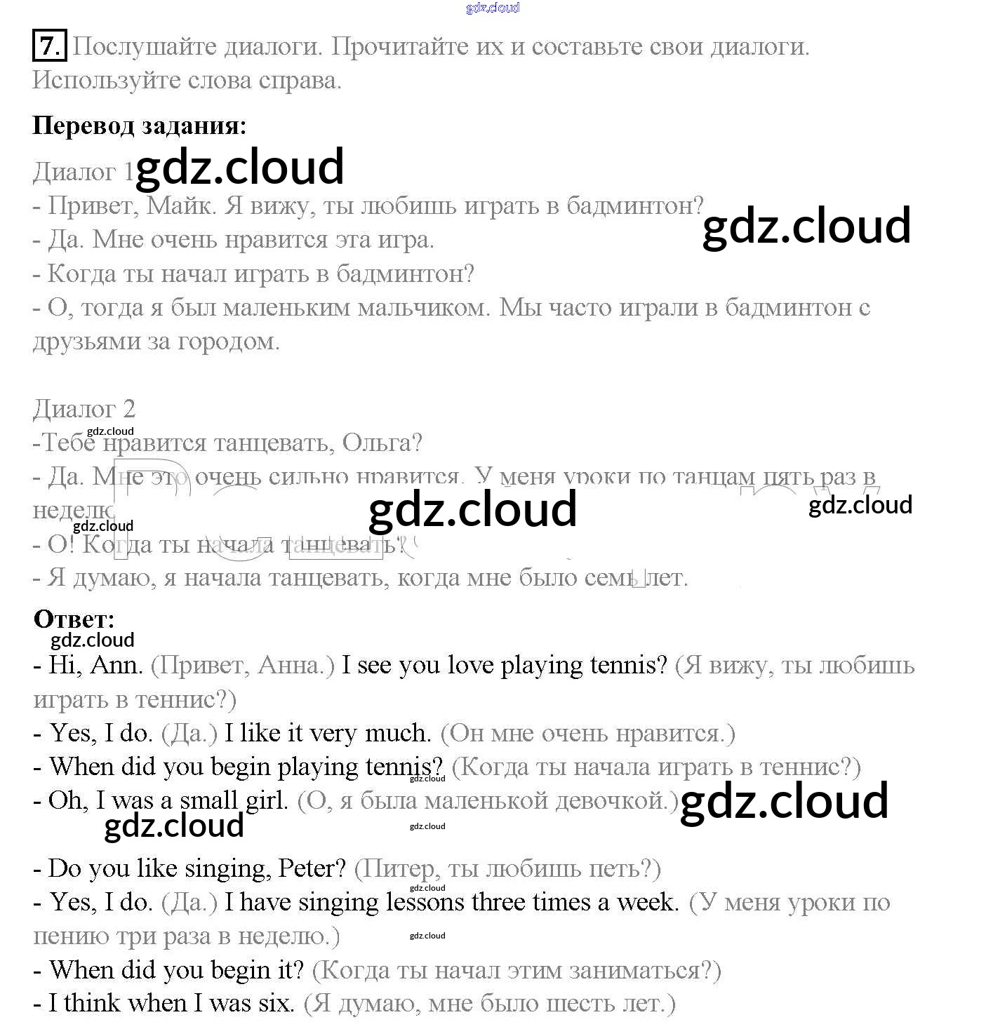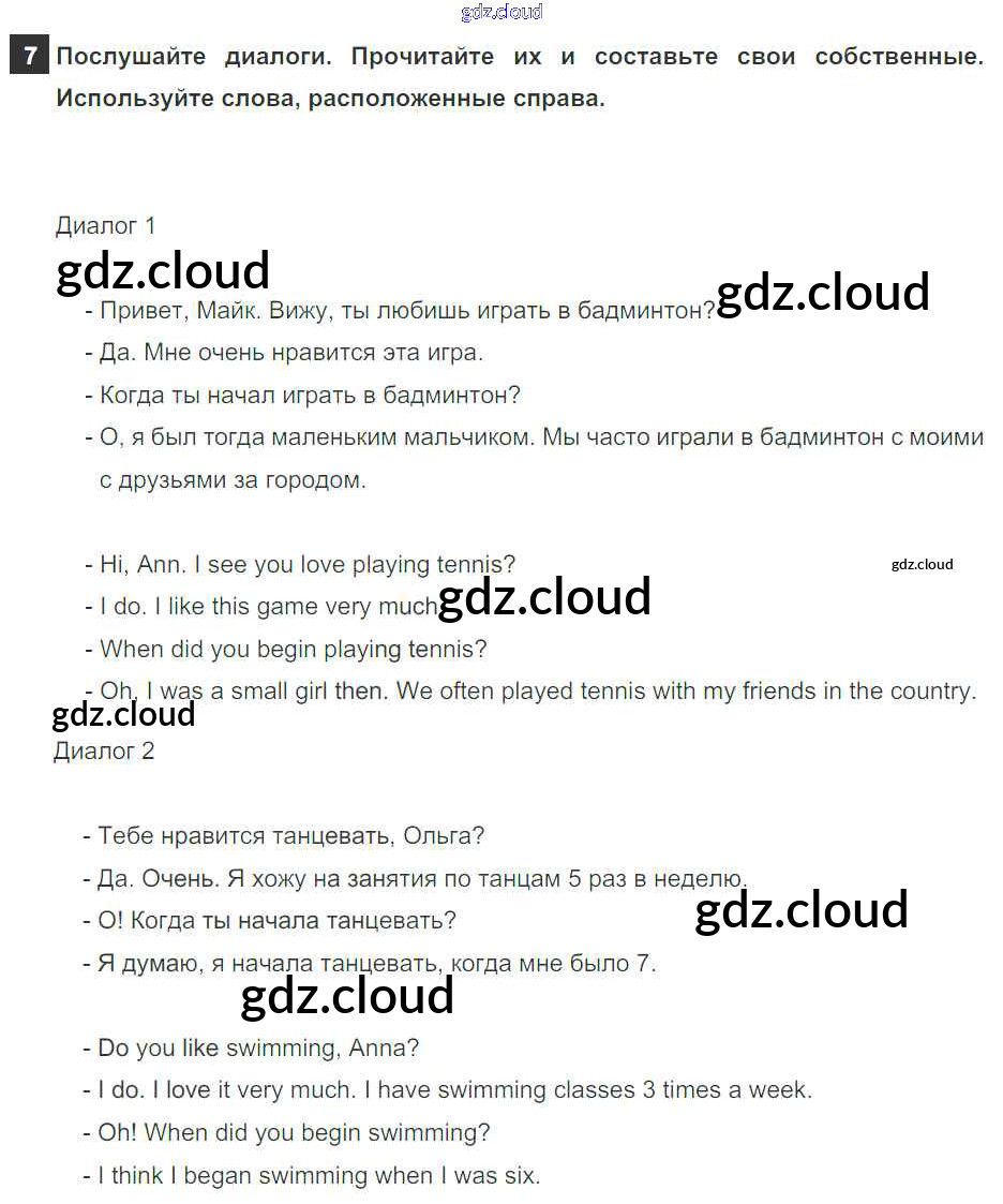 Ответ на задание 7 Учебник Английский язык за 5 (пятый) класс Афанасьева, Михеева, Баранова Rainbow 2017 Часть 1, 2