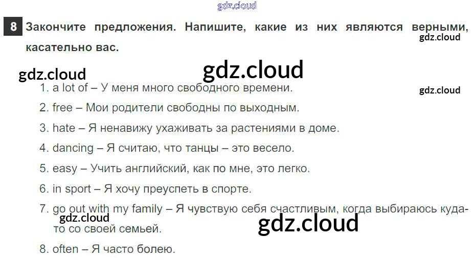 Ответ на задание 8 Учебник Английский язык за 5 (пятый) класс Афанасьева, Михеева, Баранова Rainbow 2017 Часть 1, 2