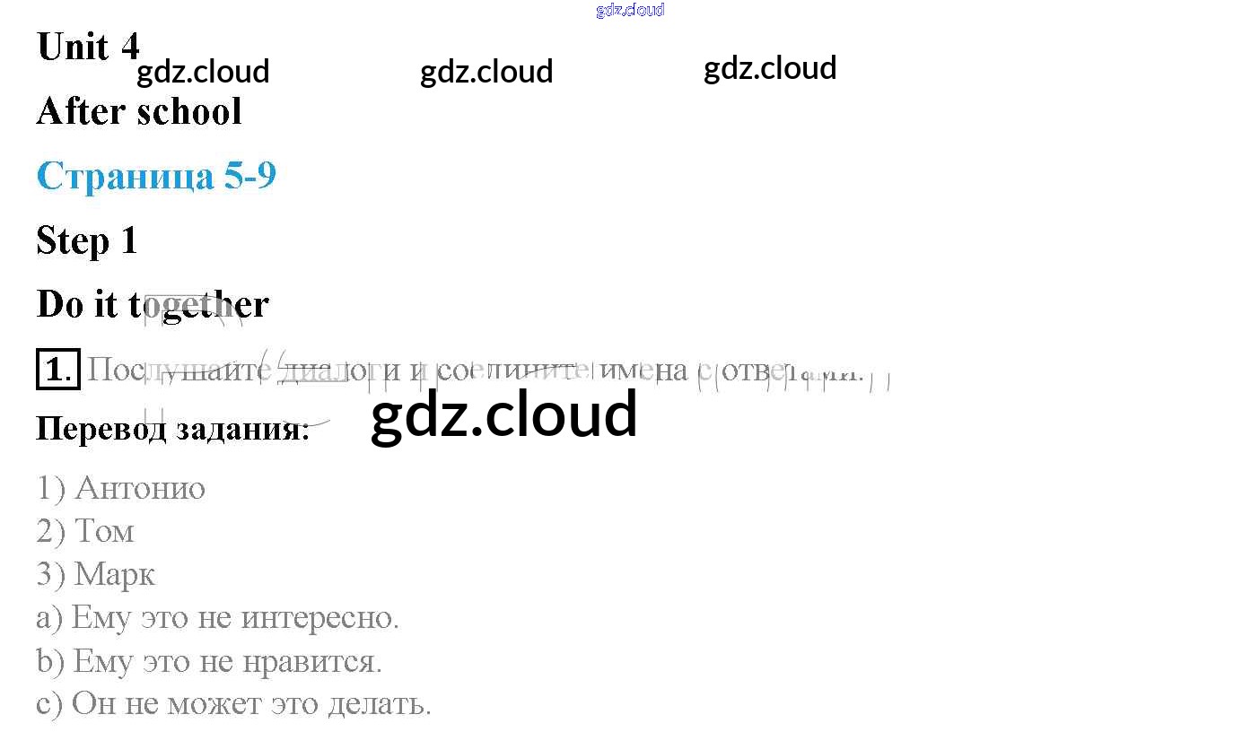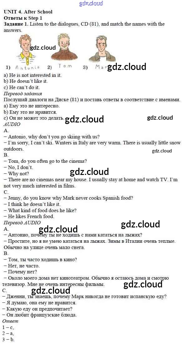 Step 1 Ответы к Unit 4. After School по Английскому языку 5 класс Учебник Афанасьева Rainbow Часть 1, 2 Дрофа