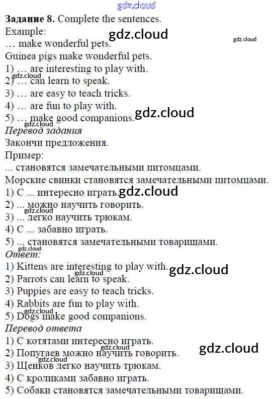 Ответ на задание 8 Учебник Английский язык за 5 (пятый) класс Афанасьева, Михеева, Баранова Rainbow 2017 Часть 1, 2