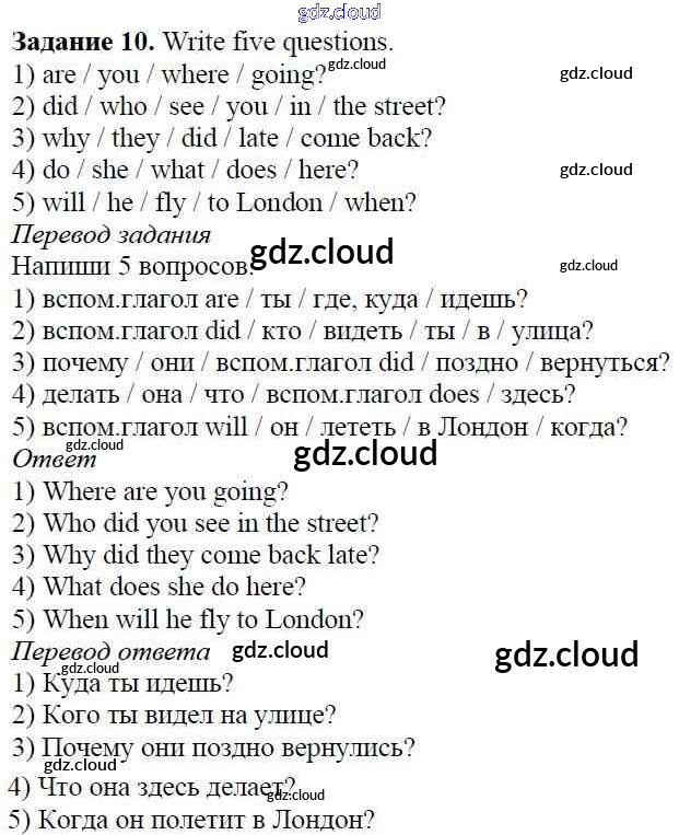 Ответ на задание 10 Учебник Английский язык за 5 (пятый) класс Афанасьева, Михеева, Баранова Rainbow 2017 Часть 1, 2