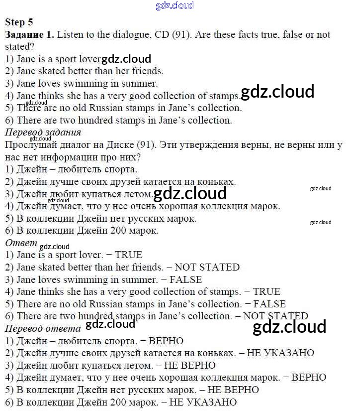 Step 5 Ответы к Unit 4. After School по Английскому языку 5 класс Учебник Афанасьева Rainbow Часть 1, 2 Дрофа