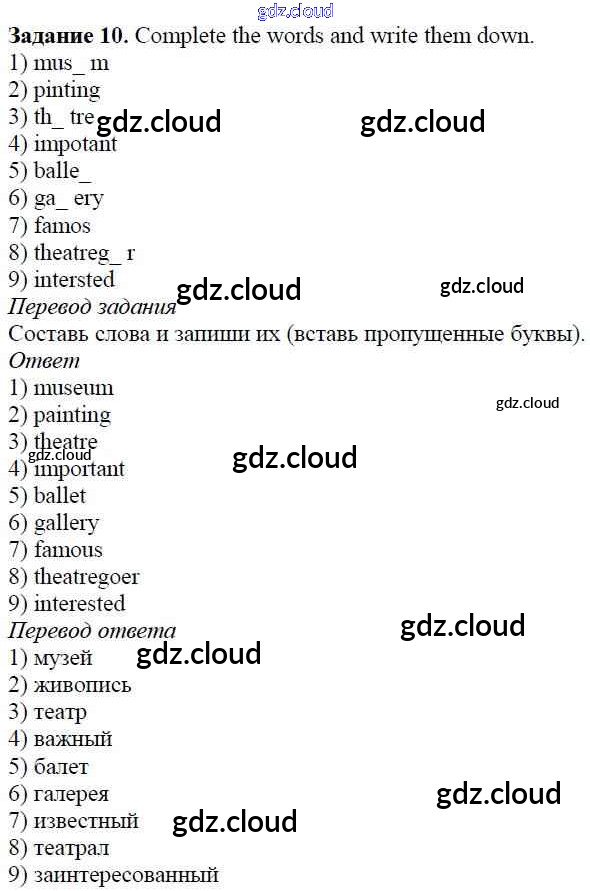 Ответ на задание 10 Учебник Английский язык за 5 (пятый) класс Афанасьева, Михеева, Баранова Rainbow 2017 Часть 1, 2