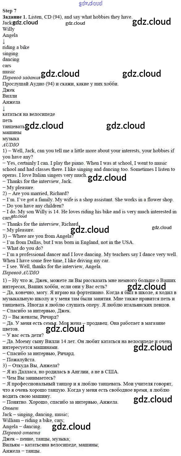 Step 7 Ответы к Unit 4. After School по Английскому языку 5 класс Учебник Афанасьева Rainbow Часть 1, 2 Дрофа