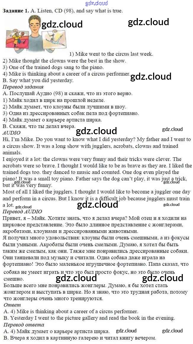 Ответ на задание 1 Учебник Английский язык за 5 (пятый) класс Афанасьева, Михеева, Баранова Rainbow 2017 Часть 1, 2