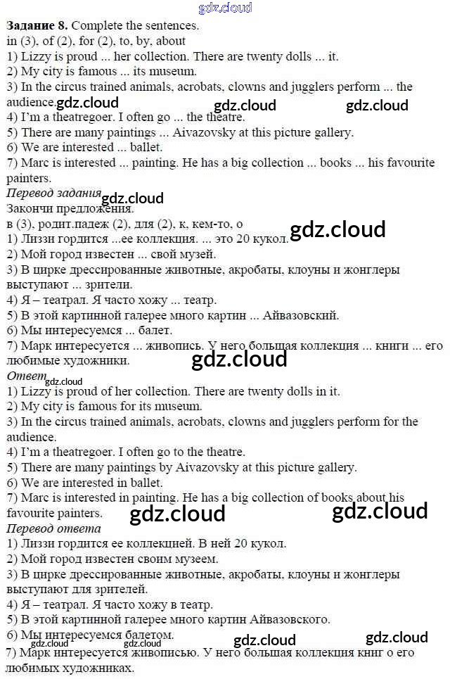 Ответ на задание 8 Учебник Английский язык за 5 (пятый) класс Афанасьева, Михеева, Баранова Rainbow 2017 Часть 1, 2