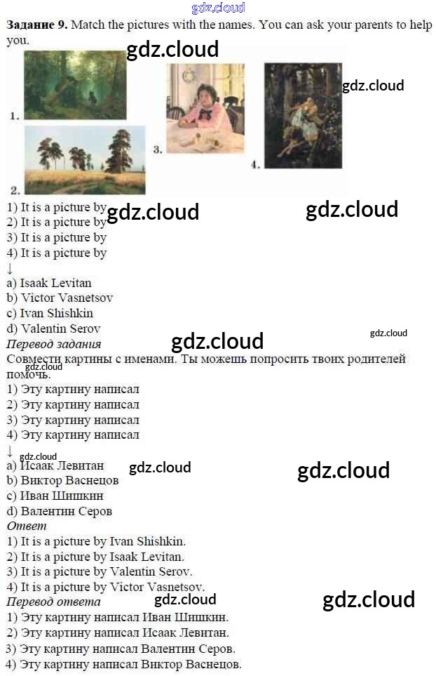 Ответ на задание 9 Учебник Английский язык за 5 (пятый) класс Афанасьева, Михеева, Баранова Rainbow 2017 Часть 1, 2