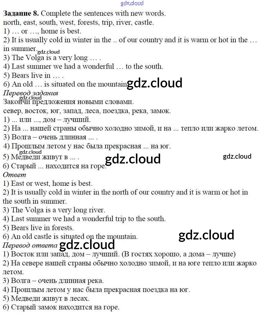 Ответ на задание 8 Учебник Английский язык за 5 (пятый) класс Афанасьева, Михеева, Баранова Rainbow 2017 Часть 1, 2