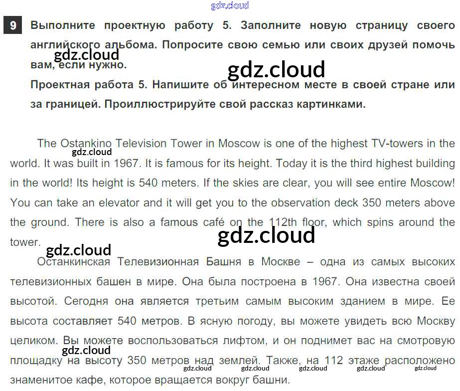 Ответ на задание 9 Учебник Английский язык за 5 (пятый) класс Афанасьева, Михеева, Баранова Rainbow 2017 Часть 1, 2