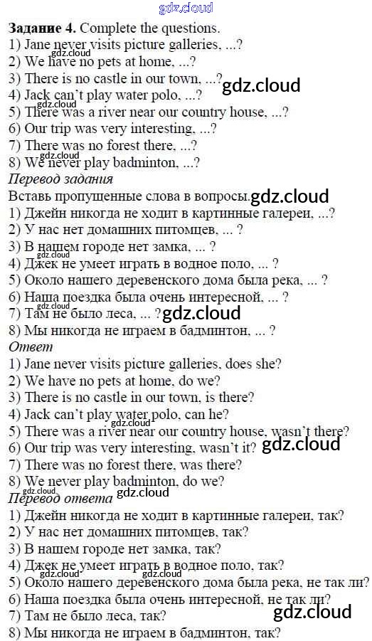 Ответ на задание 4 Учебник Английский язык за 5 (пятый) класс Афанасьева, Михеева, Баранова Rainbow 2017 Часть 1, 2