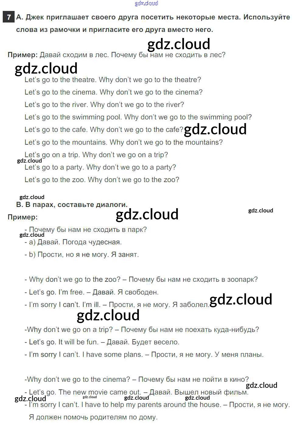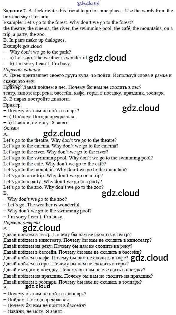 Ответ на задание 7 Учебник Английский язык за 5 (пятый) класс Афанасьева, Михеева, Баранова Rainbow 2017 Часть 1, 2