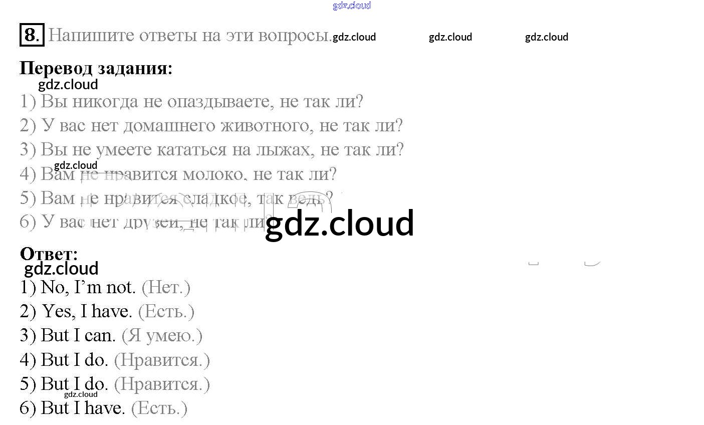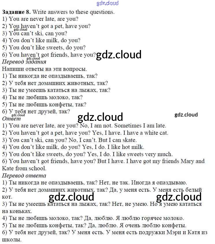 Ответ на задание 8 Учебник Английский язык за 5 (пятый) класс Афанасьева, Михеева, Баранова Rainbow 2017 Часть 1, 2