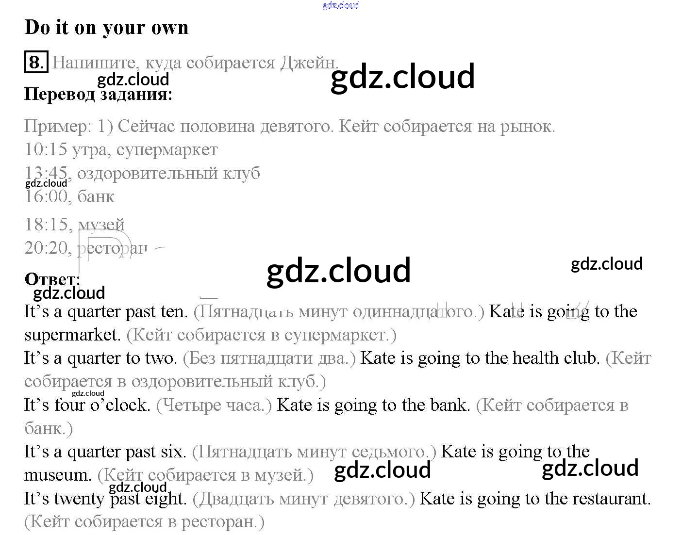 Ответ на задание 8 Учебник Английский язык за 5 (пятый) класс Афанасьева, Михеева, Баранова Rainbow 2017 Часть 1, 2
