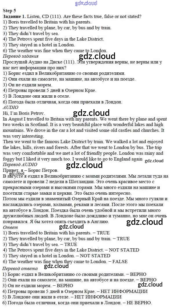 Step 5 Ответы к Unit 5. From Place to Place по Английскому языку 5 класс Учебник Афанасьева Rainbow Часть 1, 2 Дрофа
