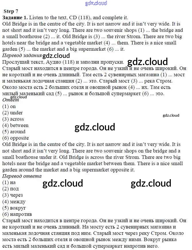 Step 7 Ответы к Unit 5. From Place to Place по Английскому языку 5 класс Учебник Афанасьева Rainbow Часть 1, 2 Дрофа