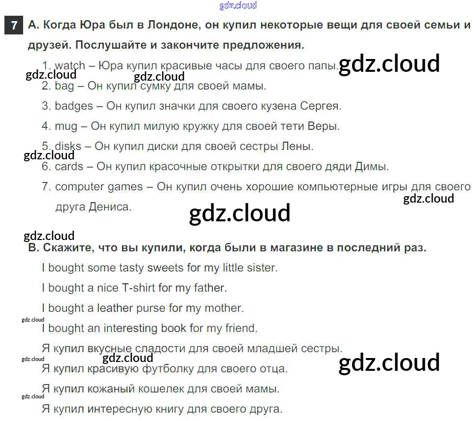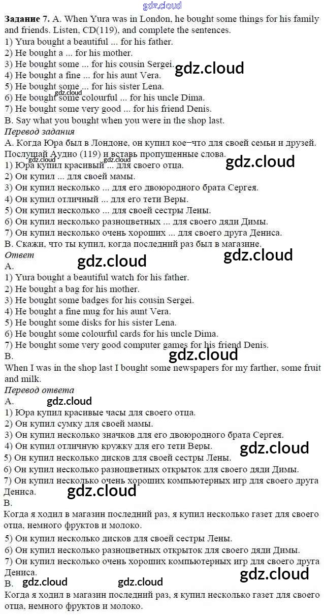 Ответ на задание 7 Учебник Английский язык за 5 (пятый) класс Афанасьева, Михеева, Баранова Rainbow 2017 Часть 1, 2