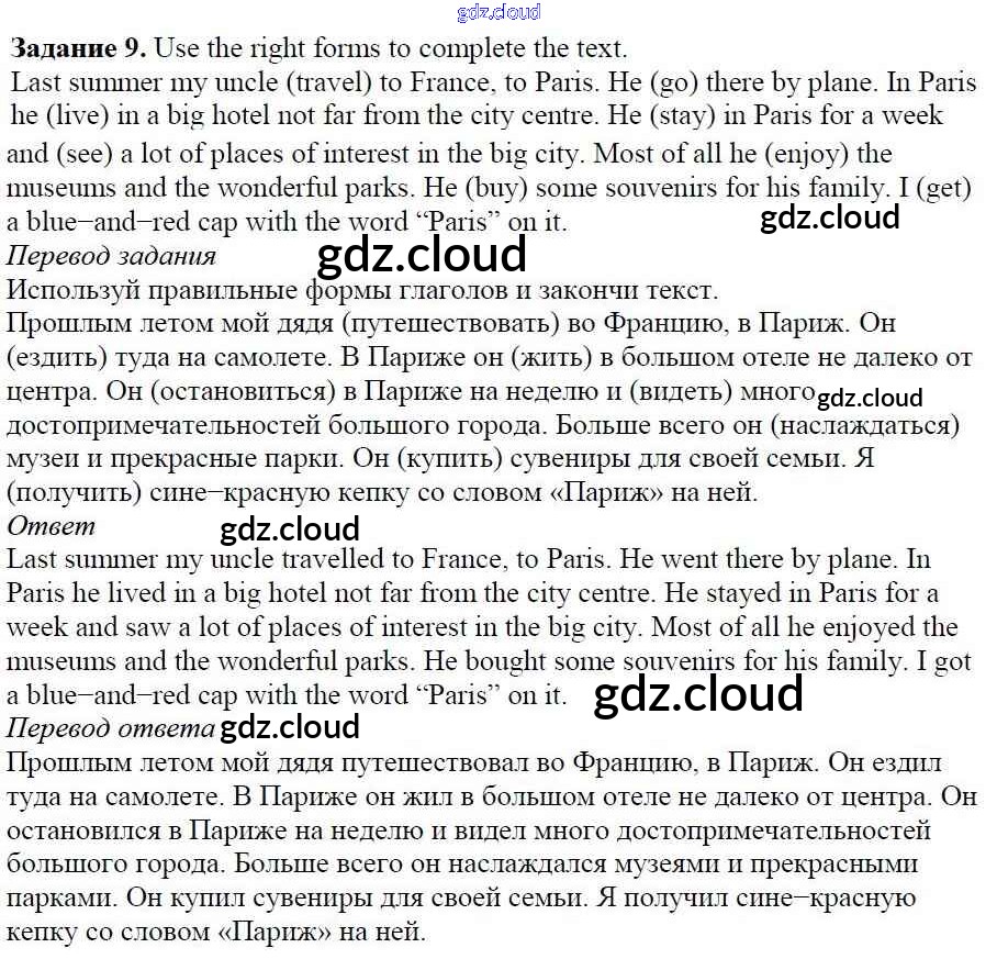Ответ на задание 9 Учебник Английский язык за 5 (пятый) класс Афанасьева, Михеева, Баранова Rainbow 2017 Часть 1, 2