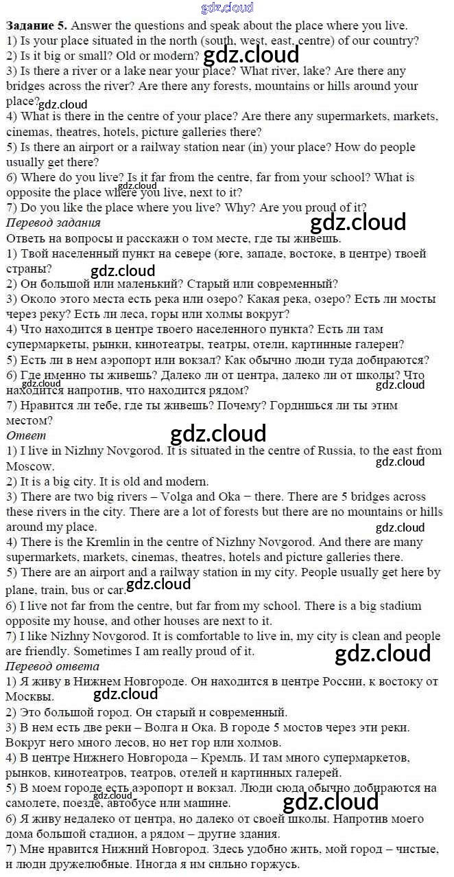 Step 9. Test Yourself Ответы к Unit 5. From Place to Place по Английскому языку 5 класс Учебник Афанасьева Rainbow Часть 1, 2 Дрофа
