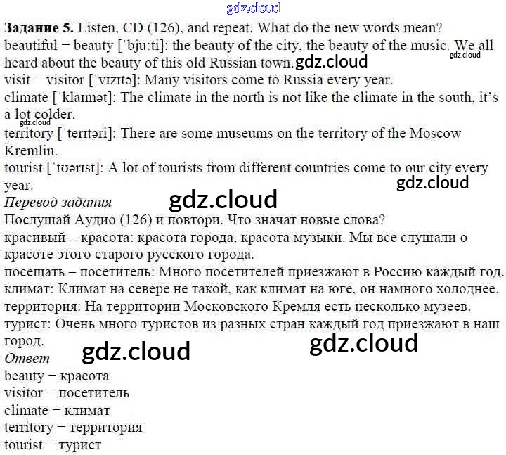 Ответ на задание 5 Учебник Английский язык за 5 (пятый) класс Афанасьева, Михеева, Баранова Rainbow 2017 Часть 1, 2