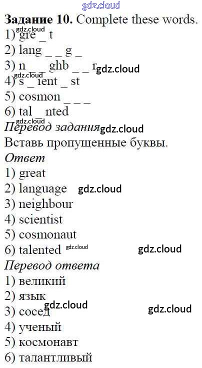 Ответ на задание 10 Учебник Английский язык за 5 (пятый) класс Афанасьева, Михеева, Баранова Rainbow 2017 Часть 1, 2