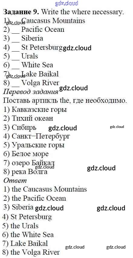 Ответ на задание 9 Учебник Английский язык за 5 (пятый) класс Афанасьева, Михеева, Баранова Rainbow 2017 Часть 1, 2