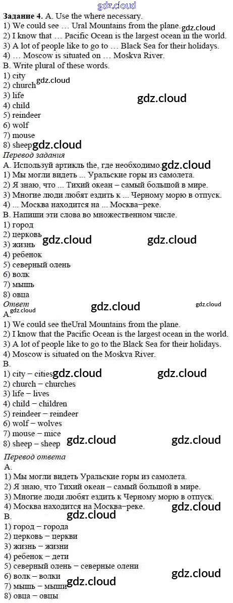 Ответ на задание 4 Учебник Английский язык за 5 (пятый) класс Афанасьева, Михеева, Баранова Rainbow 2017 Часть 1, 2