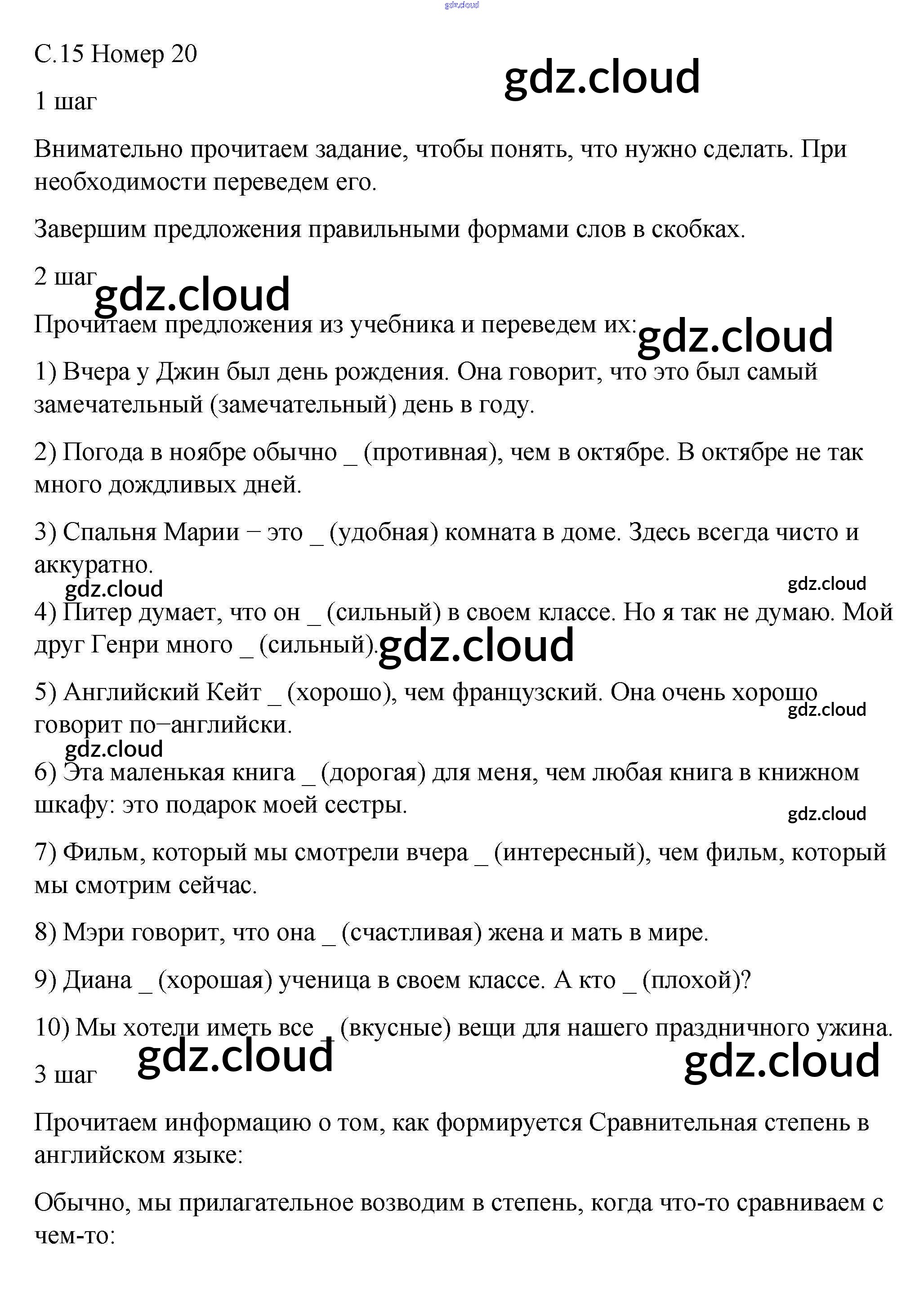 Ответ на задание 20 Рабочая тетрадь Английский язык за 5 (пятый) класс Афанасьева, Михеева, Баранова Rainbow 2017