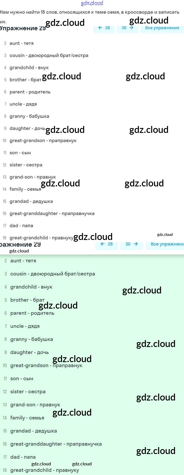 Ответ на задание 29 Рабочая тетрадь Английский язык за 5 (пятый) класс Афанасьева, Михеева, Баранова Rainbow 2017