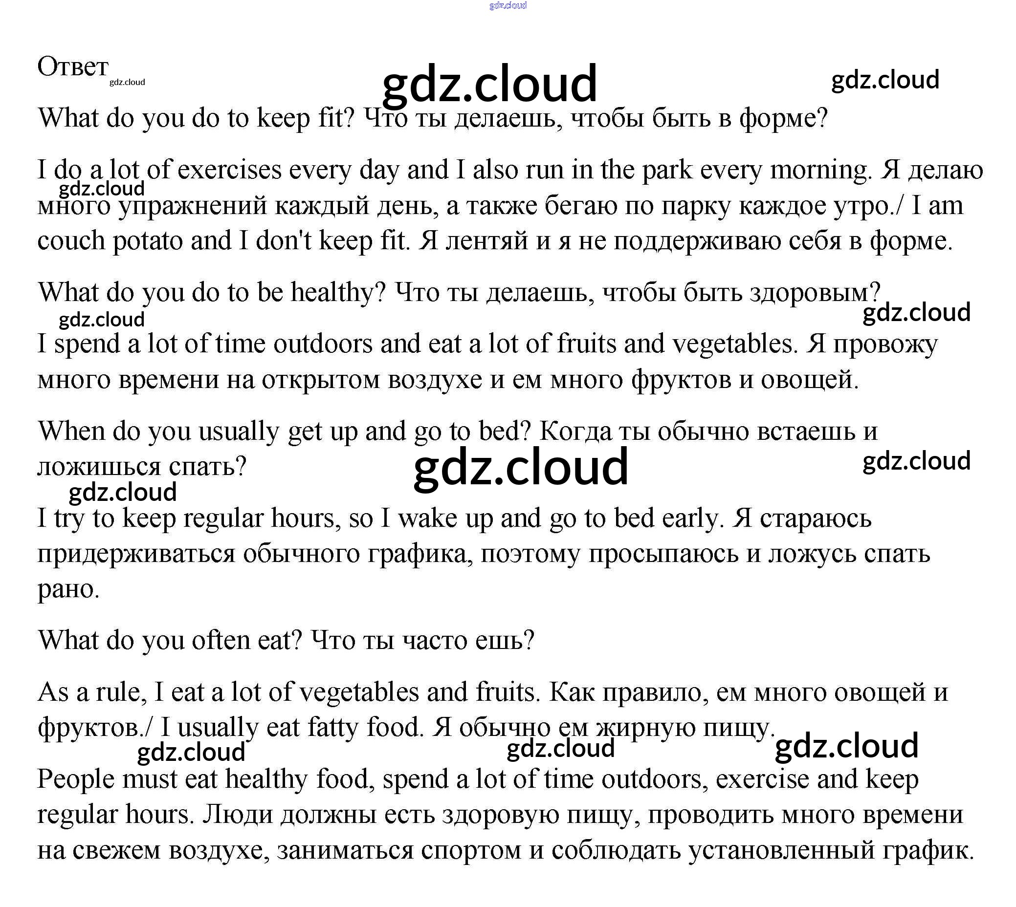 Ответы к Unit Free. Healthy Ways по Английскому языку 5 класс Рабочая тетрадь Афанасьева Rainbow Дрофа