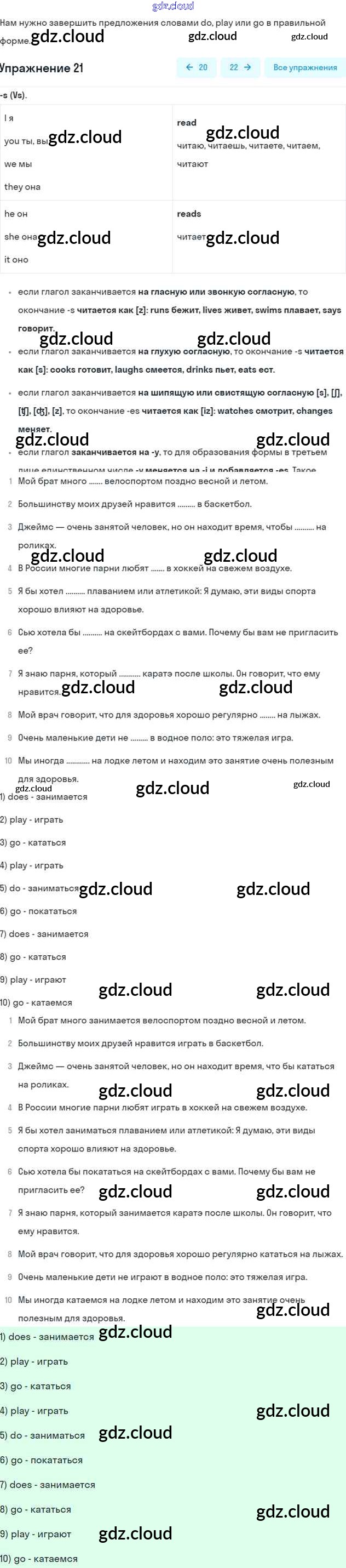 Ответ на задание 21 Рабочая тетрадь Английский язык за 5 (пятый) класс Афанасьева, Михеева, Баранова Rainbow 2017