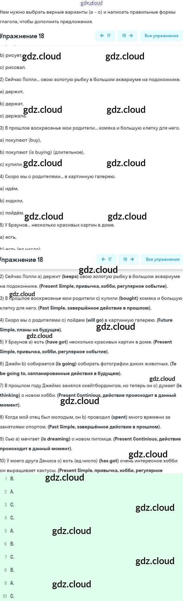 Ответ на задание 18 Рабочая тетрадь Английский язык за 5 (пятый) класс Афанасьева, Михеева, Баранова Rainbow 2017