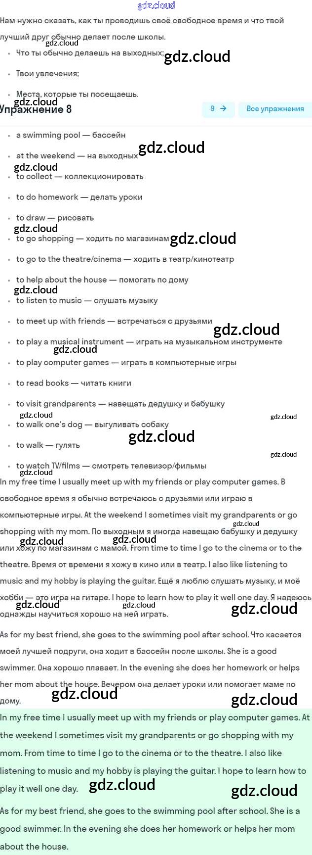 Ответ на задание 8 Рабочая тетрадь Английский язык за 5 (пятый) класс Афанасьева, Михеева, Баранова Rainbow 2017
