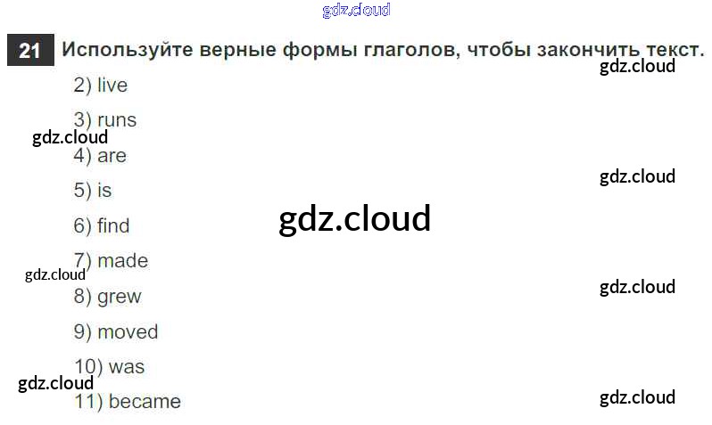 Ответ на задание 21 Рабочая тетрадь Английский язык за 5 (пятый) класс Афанасьева, Михеева, Баранова Rainbow 2017