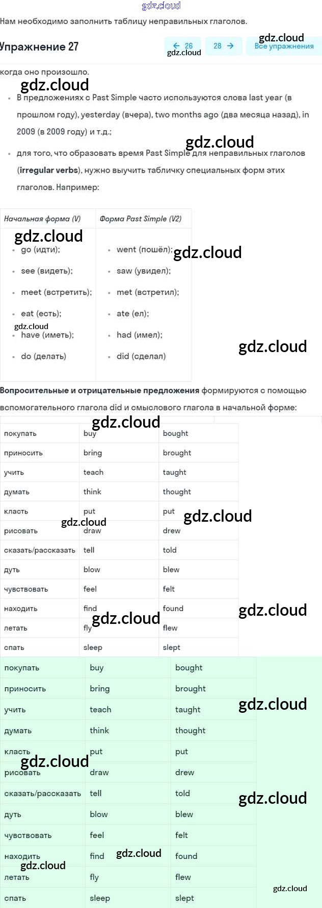 Ответ на задание 27 Рабочая тетрадь Английский язык за 5 (пятый) класс Афанасьева, Михеева, Баранова Rainbow 2017