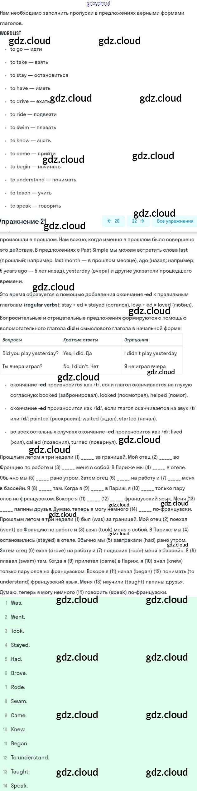 Ответ на задание 21 Рабочая тетрадь Английский язык за 5 (пятый) класс Афанасьева, Михеева, Баранова Rainbow 2017