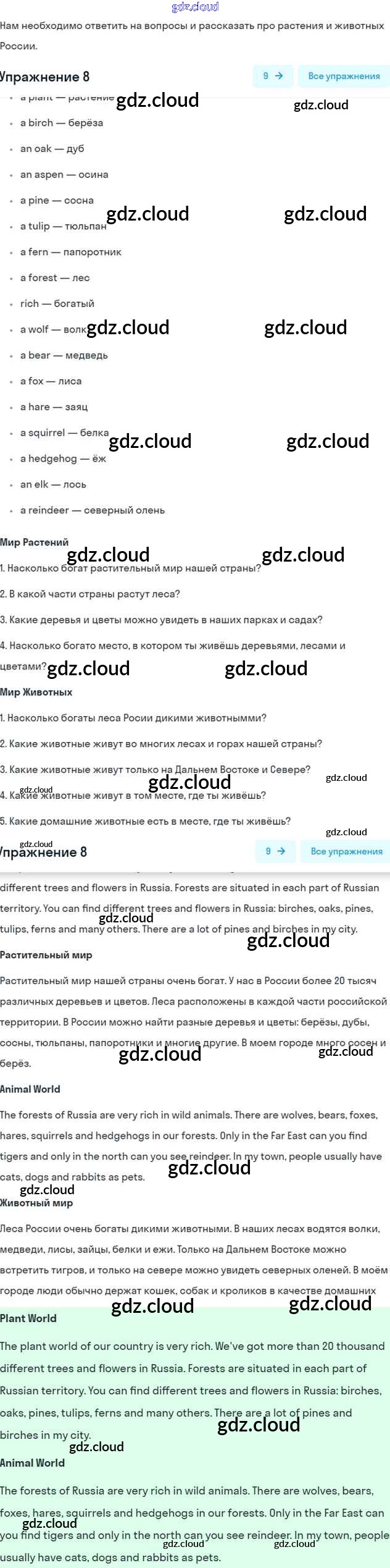 Ответ на задание 8 Рабочая тетрадь Английский язык за 5 (пятый) класс Афанасьева, Михеева, Баранова Rainbow 2017