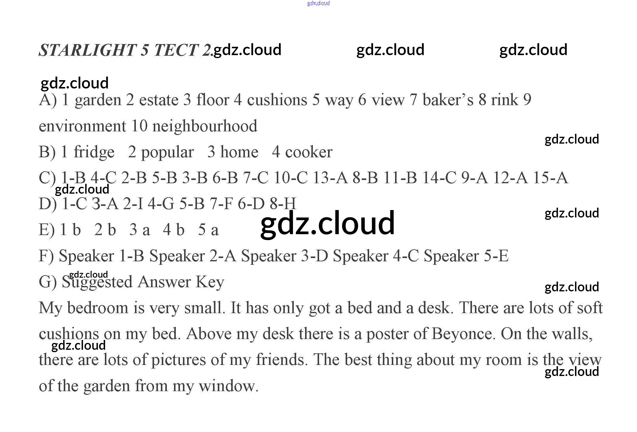 Ответы к Тестам по Английскому языку 5 класс Контрольные задания Баранова Starlight Углубленный уровень Просвещение