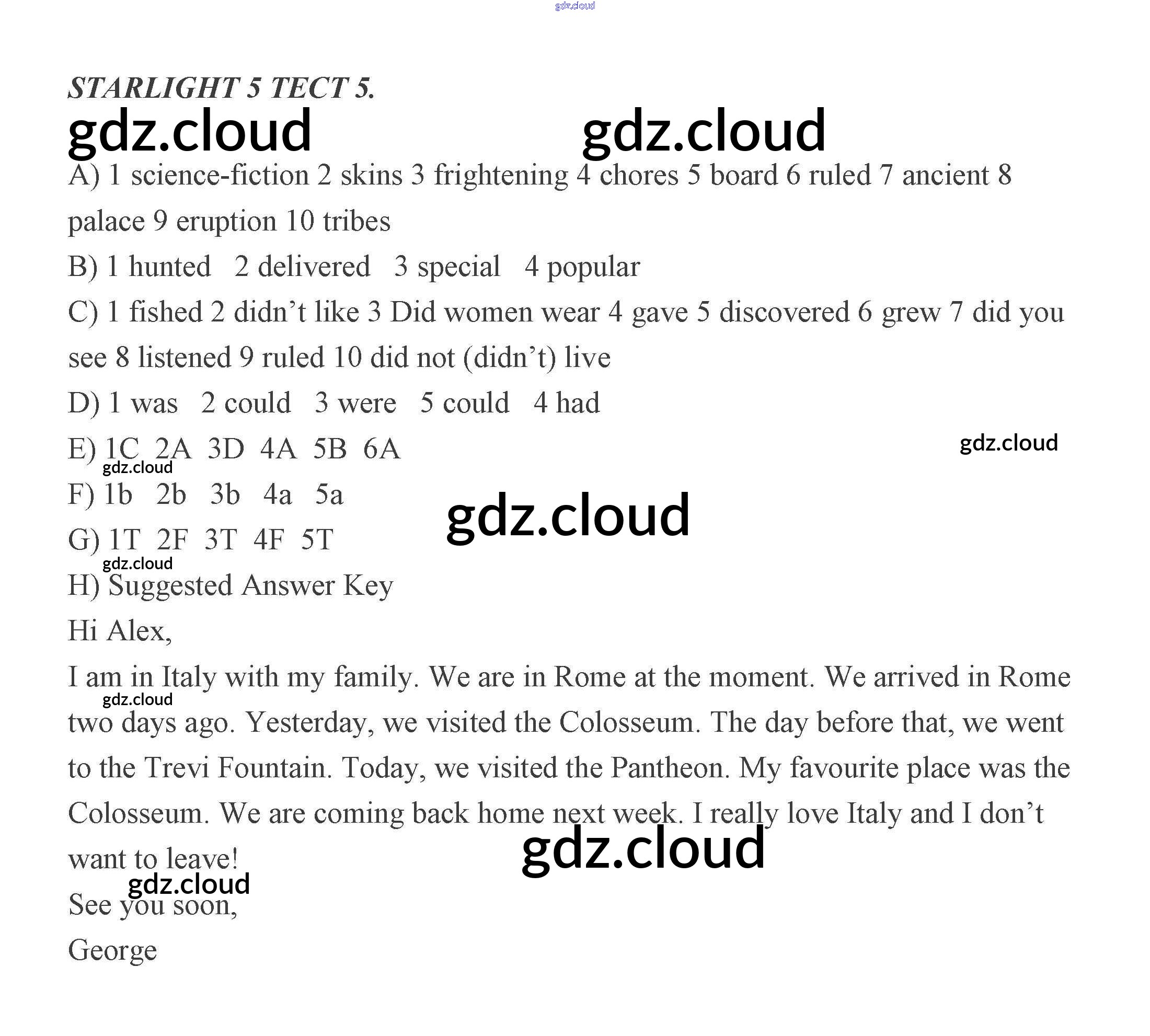 Ответы к Тестам по Английскому языку 5 класс Контрольные задания Баранова Starlight Углубленный уровень Просвещение
