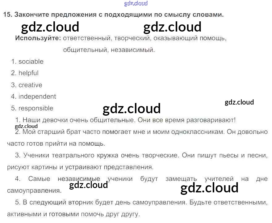 Ответ на задание 15 Учебник Английский язык за 5 (пятый) класс Биболетова, Денисенко, Трубанева Enjoy English 2015