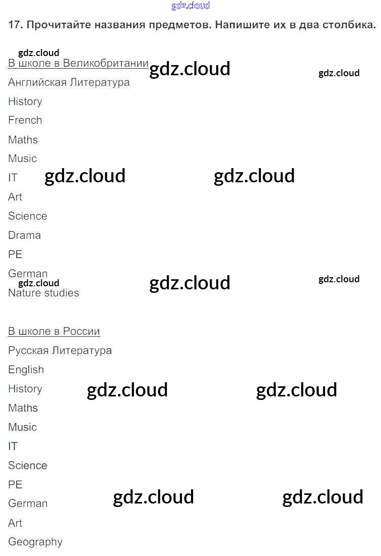 Ответ на задание 17 Учебник Английский язык за 5 (пятый) класс Биболетова, Денисенко, Трубанева Enjoy English 2015
